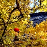 金秋十月來到江東古銀杏村,沿著江東村由火山石鋪成的小道,慢慢走進古銀杏村時,一地金黃,小路上、墻頭上、瓦房上、水溝邊、菜地里… …漫步村中小巷,不經(jīng)意間,銀杏葉灑滿一身,與夕陽的余輝融為一體… …