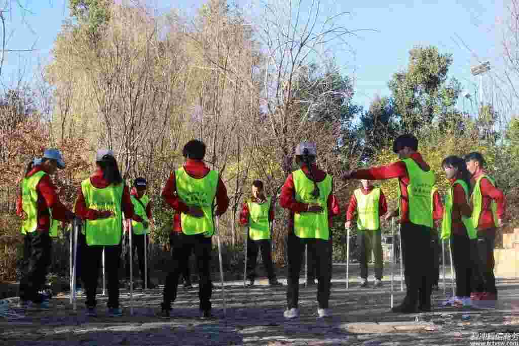 不倒森林,就是參與挑戰的學員圍成一個圓圈,每人拿一根同樣的塑料管,約1.5米,讓棒直立后用右手掌心按住棒的上面,左手放在背后,保持棒直立,在喊“換”時,后一人接住前一人的棒。學員們需要在桿子不著地、不能用手去抓桿子等等規則下去完成一個圓的走動。這是這個拓展項目的基本描述,大家單從文字中似乎覺得很簡單。但是在實際的操作中,會有很多的團隊兵敗在這個項目上,甚至到最后都不明白為什么會失敗。它能培養學員做事的專注能力。
